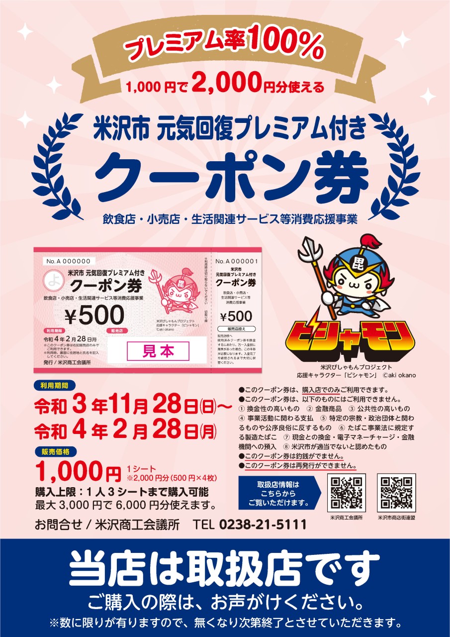 2022.2.10 米沢市元気回復プレミアム付きクーポン券 有効期限は今月末です!
